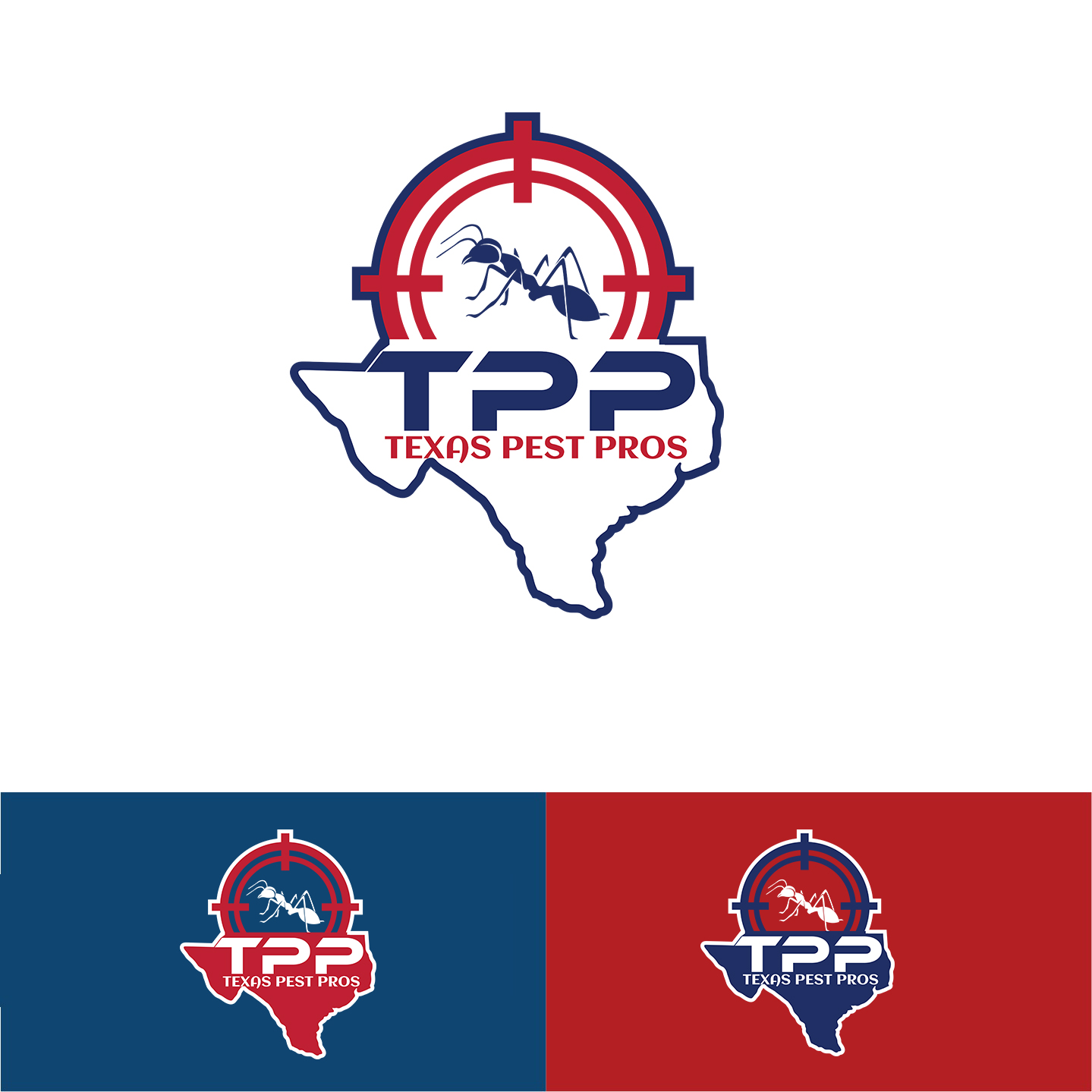 CH Wants: | I want the state of texas and an insect mosquito or ant or both and the buisness name spelled out in full. possibly abbreviated TPP with the company name underneath. |
