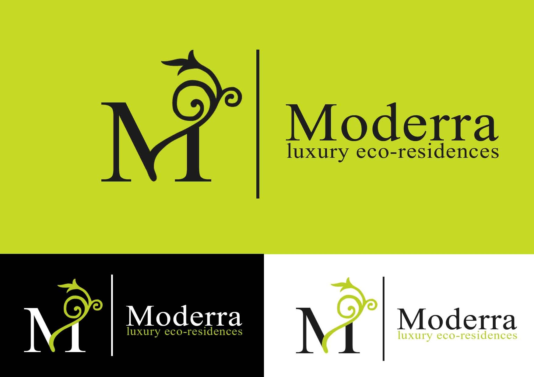 | CH Wants: | Would like colors but would still want the logo to work in black & white (if needed). Logo must contain a graphic symbol with the text Moderra. Try both upper-case and init-caps for Moderra. |