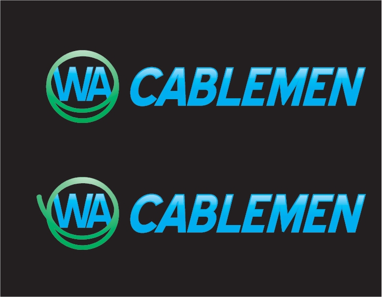 | CH Wants: | We Like These Designs. (fonts, colors, style):simple logo that reflectives the cable that we will be mainly using and Western Australia if possible.just a few little things that i like - the darkend background- all capitals - and a more agressive maybe italic font for ( CABLEMEN )- the logo ( WA ) side of it, is coming along really well |